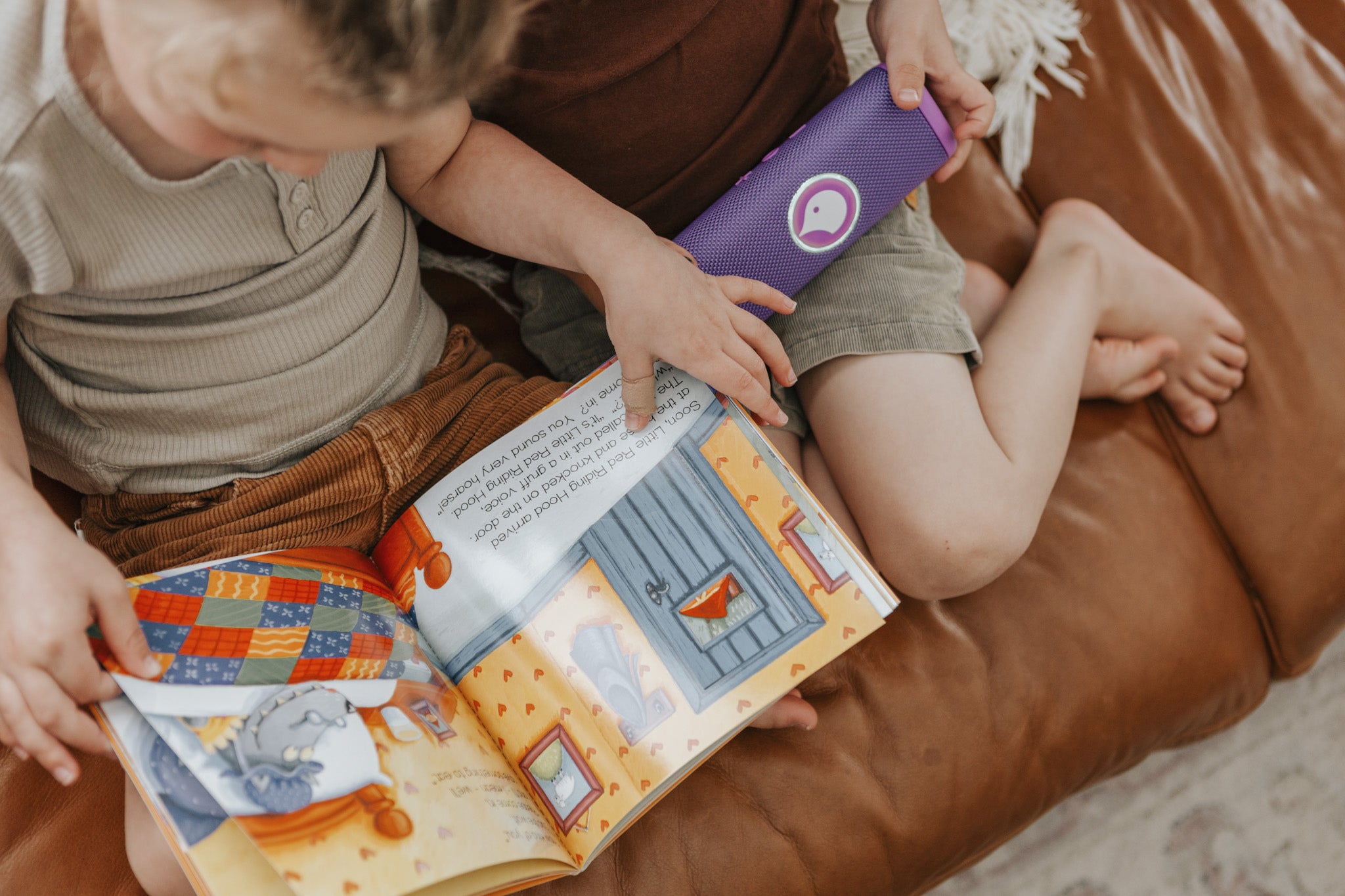 Birde is designed to support reading. Children listen to the story while following along in a real book, with audio played aloud through a shared speaker.